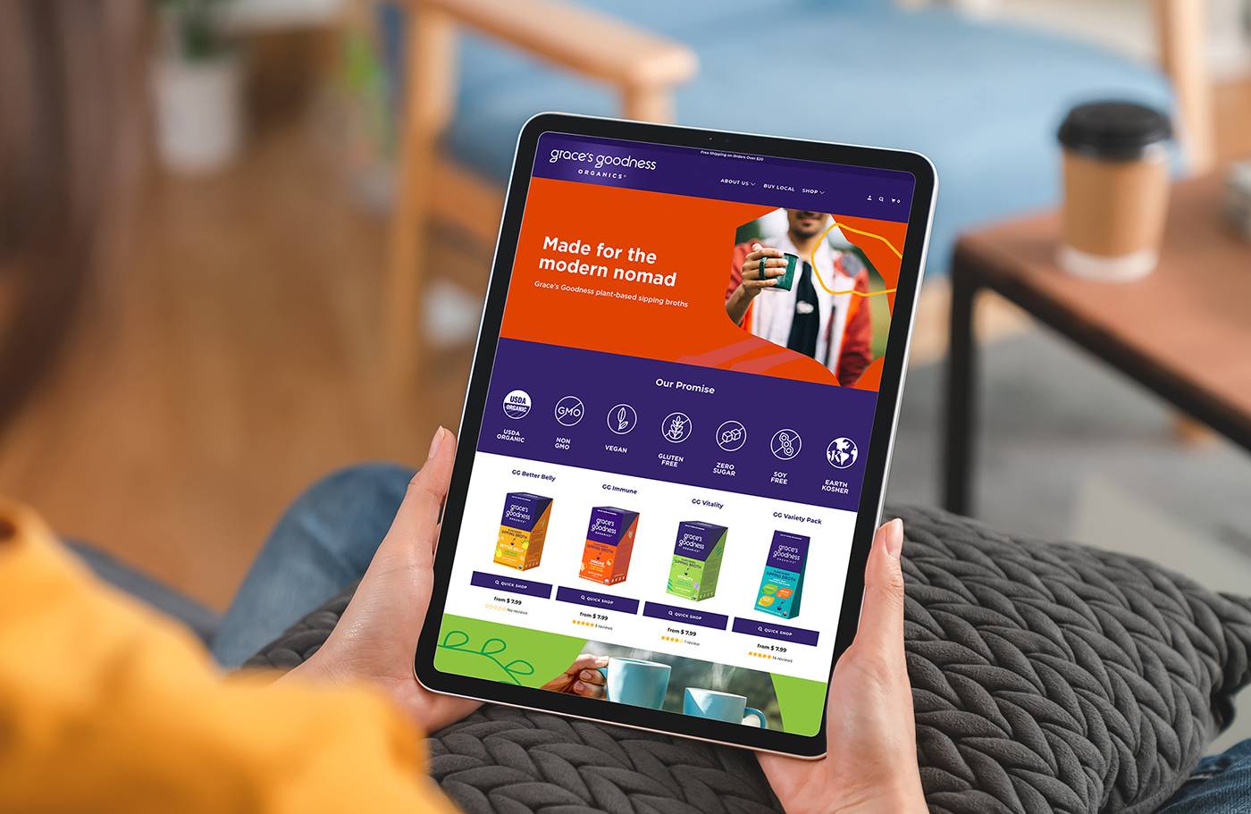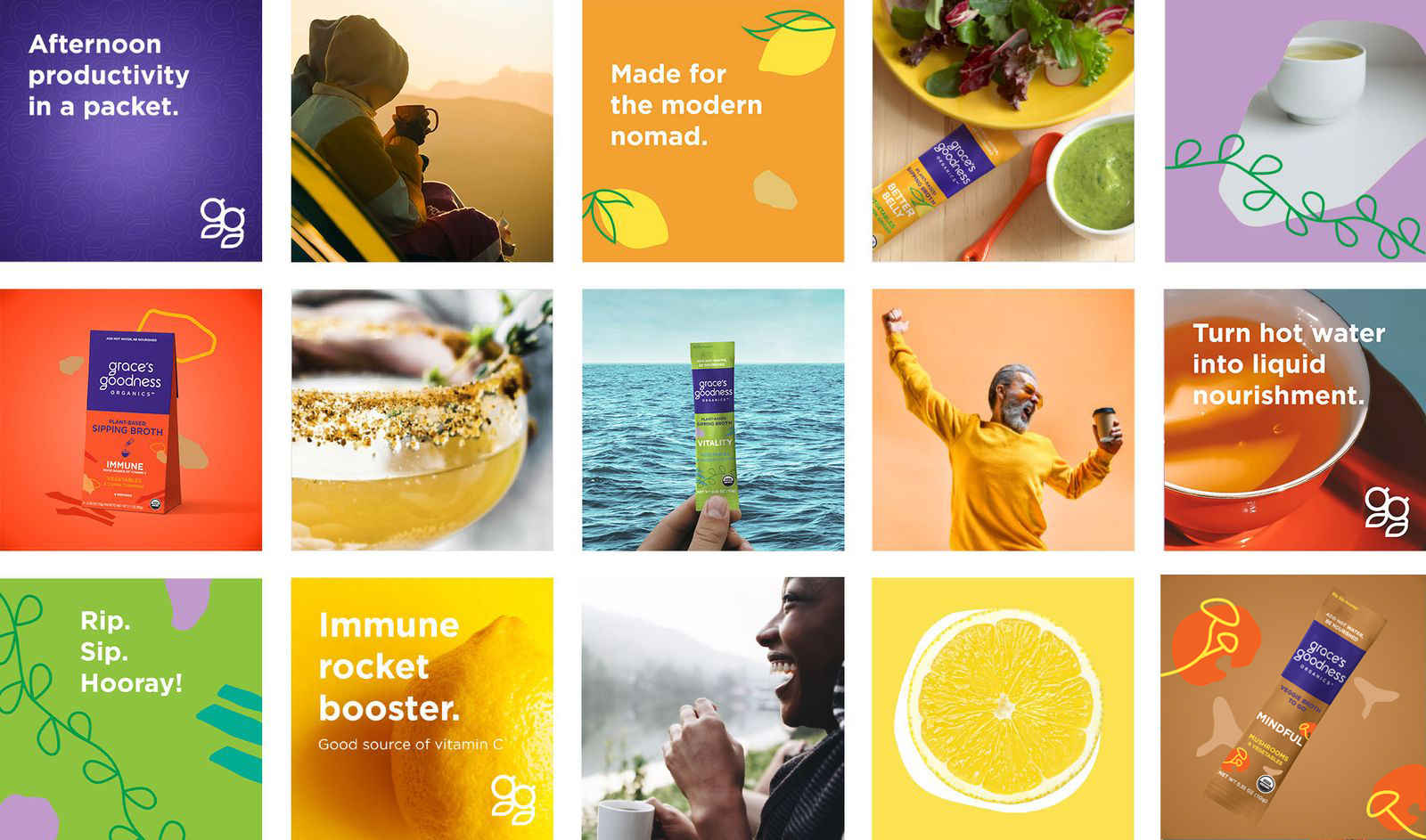 The rebrand repositioned Grace’s Goodness as a fun, healthy and convenient instant veggie broth designed for modern nomads. The rollout included a new logo, packaging and website, supported by comprehensive brand guidelines and a toolkit of social, email and web templates. Together, the system helped strengthen shelf presence, clarify the product offering and provide a scalable foundation for future category expansion.