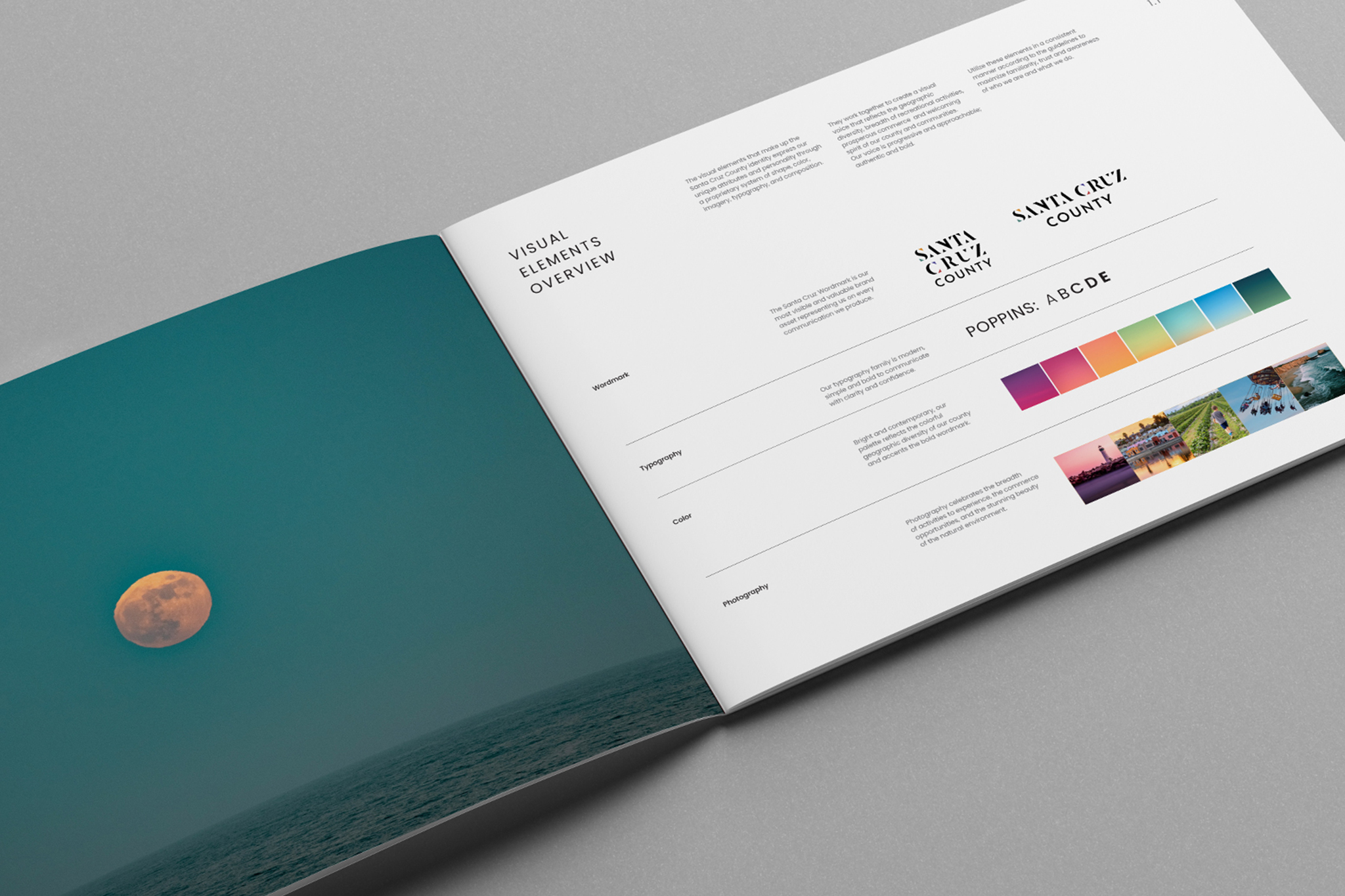 The new identity was built around four core pillars: Coastline, Redwoods, Creativity and Agriculture. This created a flexible system that could anchor communications across digital, print, environments and branded merchandise. The work helped unify the county’s extended communities under a shared visual language while allowing each to retain its individuality, reinforcing Santa Cruz County as a place of culture, commerce and possibility from sunrise to well past sundown.