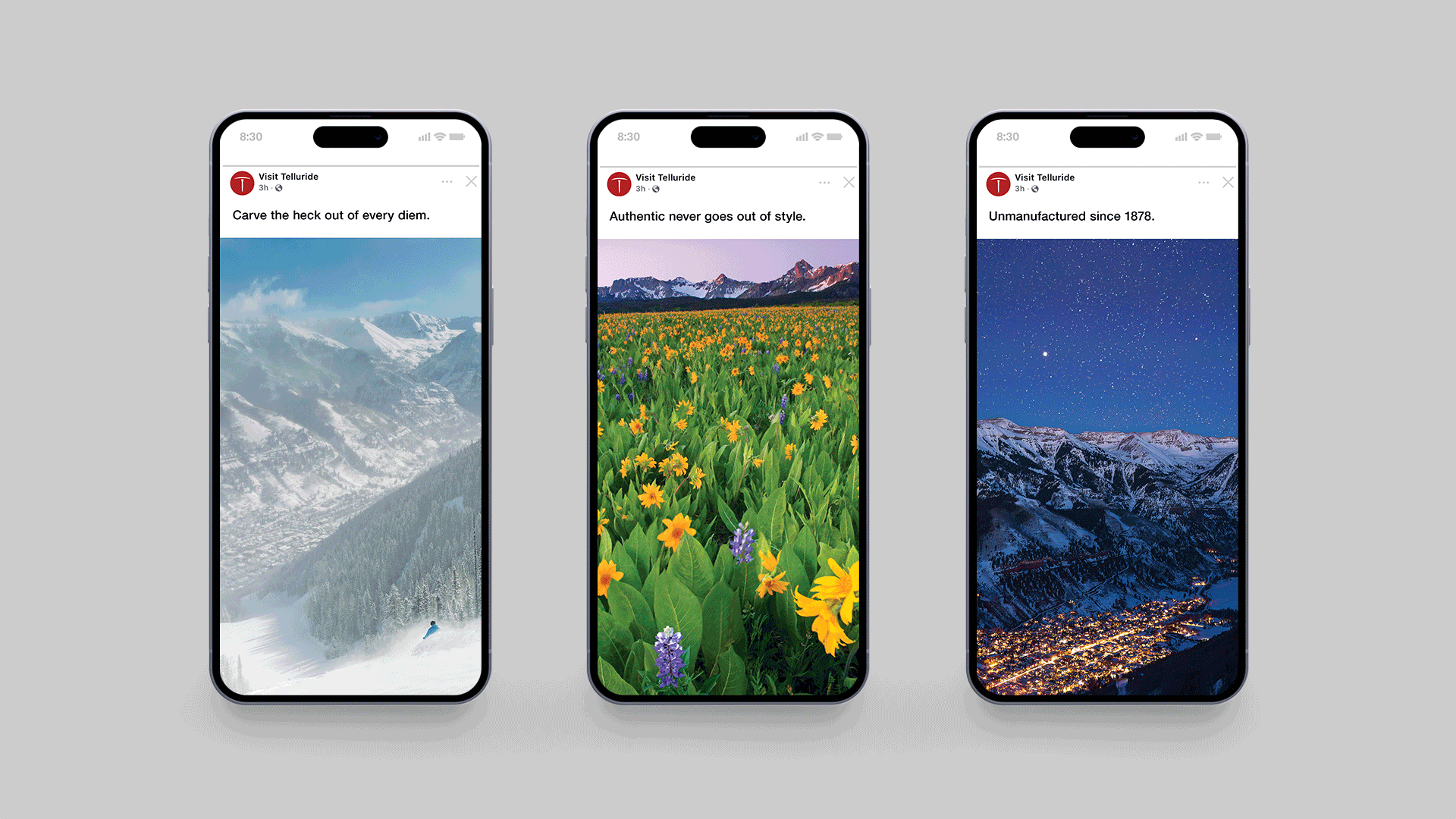 In collaboration with the Genesis team and the Telluride Tourism Board, I helped develop a differentiating platform that captured the destination’s unmanufactured ethos, blending rich history, understated sophistication and the intimacy of its iconic box canyon. By reintroducing the pickaxe “T” that Genesis designed decades earlier as a proprietary shorthand, the campaign anchored powerful, action-oriented messaging across channels, strengthening brand recognition and reinforcing Telluride’s unique place within a competitive resort landscape.