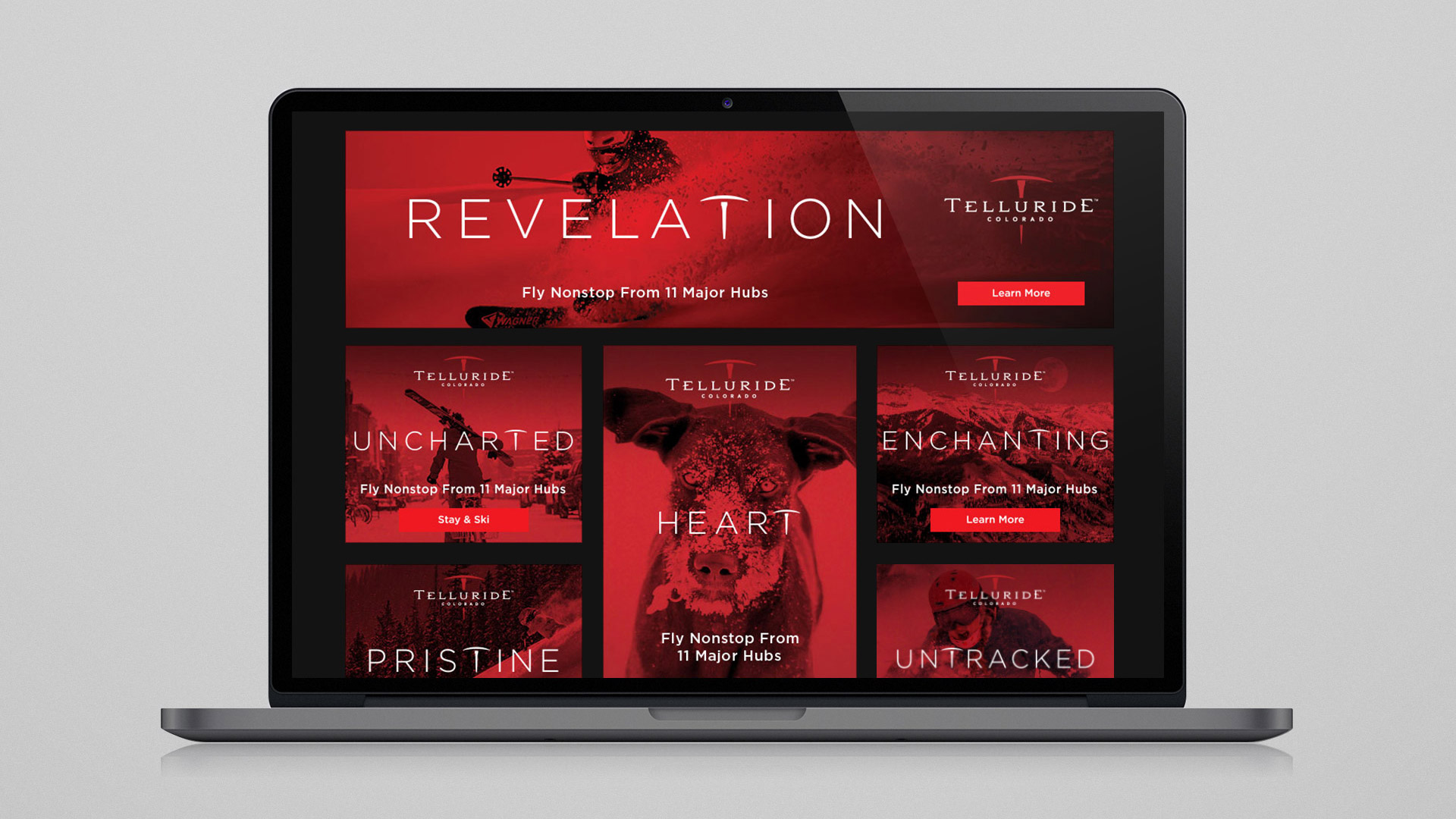 A brand awareness campaign was created to position Telluride as a world-class, four-season destination while honoring its distinctive character. The work leveraged the original Telluride logo and signature red to create a cohesive, ownable visual system rooted in authenticity.